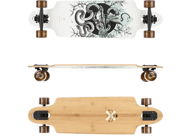 A performance mid-length drop–through shape for an exceptional carving experience and float through your turns.