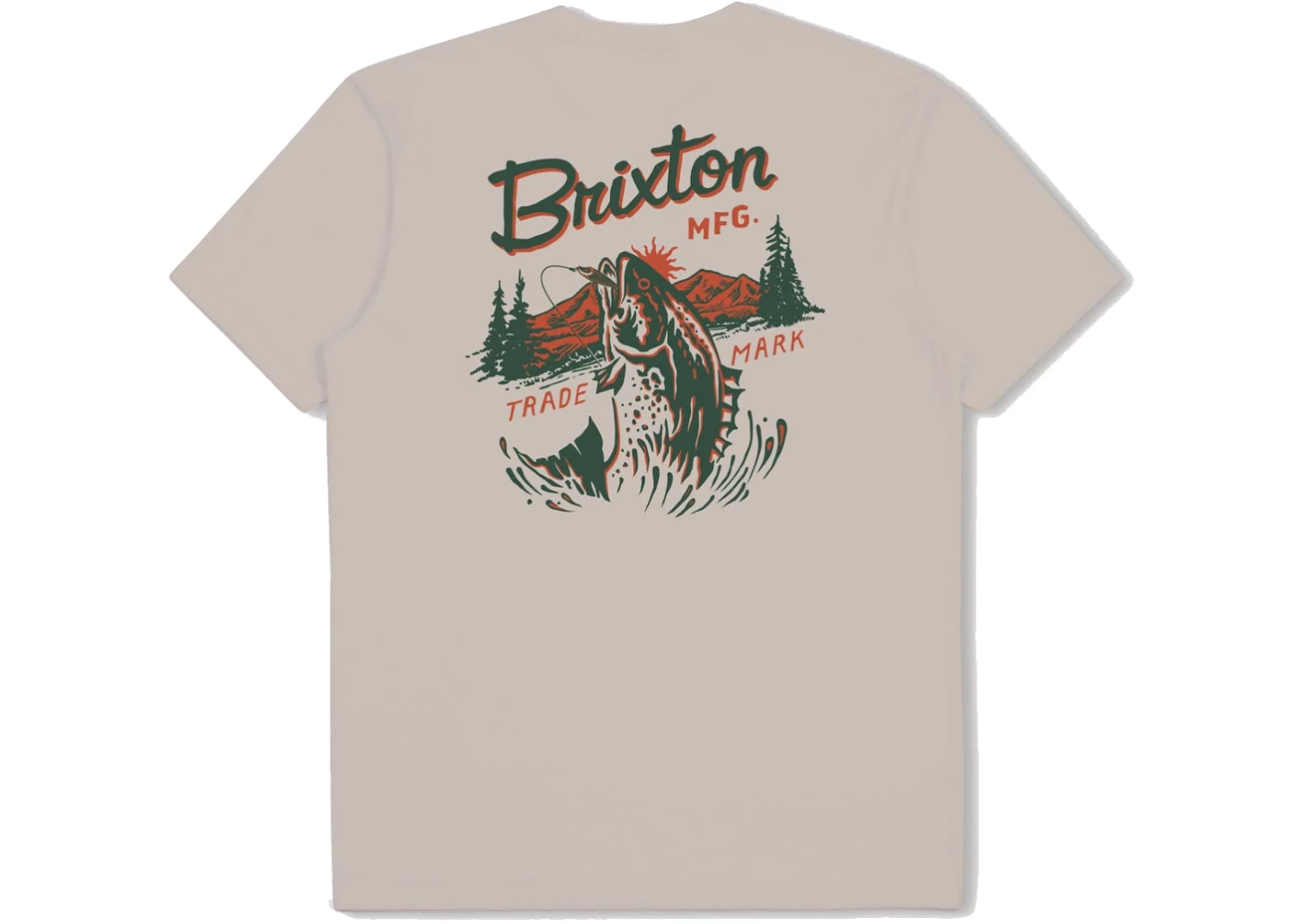 This is a staple tee with a standard fit. Made from soft, breathable cotton, it has front and back graphics inspired by retro fishing companies.