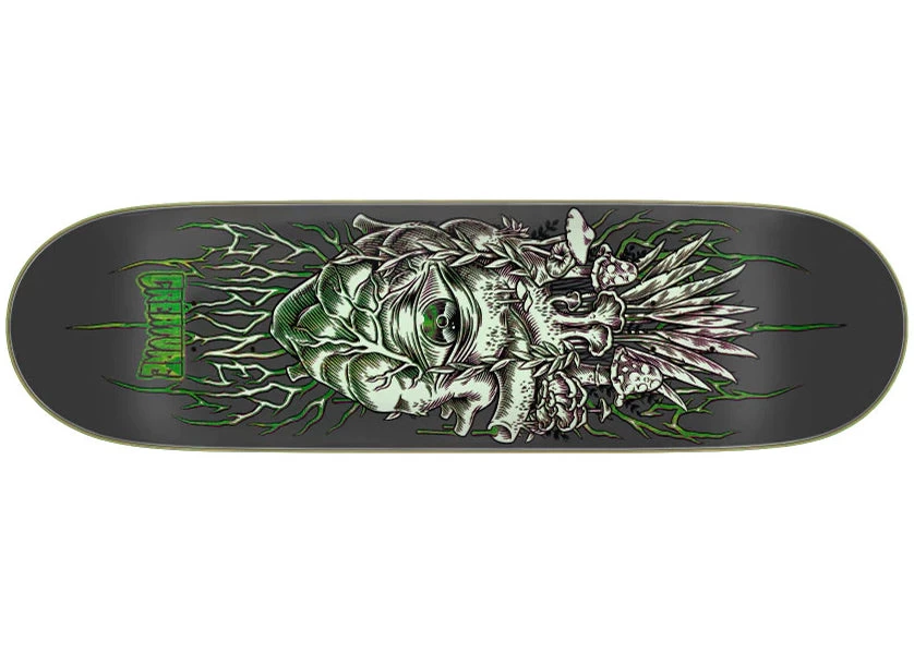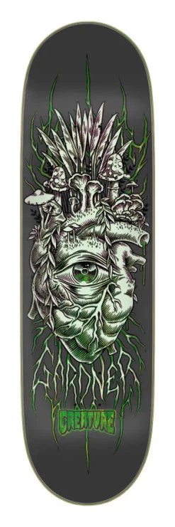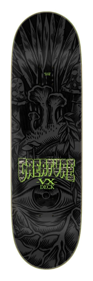 Creature Skateboards John Gardner Keepsake Pro VX Deck with spot gloss and matte graphic art by Matt Cantrell @mattcan. VX decks are thinner, stronger, and have more pop than standard 7 ply decks featuring 5 plies of North American Maple and 2 layers of Quad X technology. Now on a new mellower 3D concave and Stumps shape.