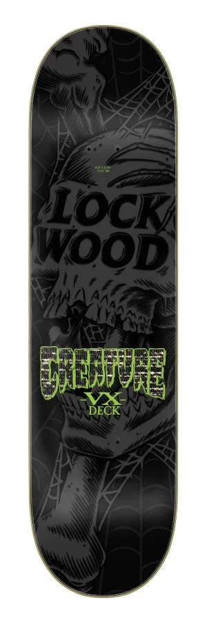 Creature Skateboards Cody Lockwood Keepsake Pro VX Deck with spot gloss and matte graphic art by Matt Cantrell @mattcan. VX decks are thinner, stronger, and have more pop than standard 7 ply decks featuring 5 plies of North American Maple and 2 layers of Quad X technology. Now on a new mellower 3D concave.