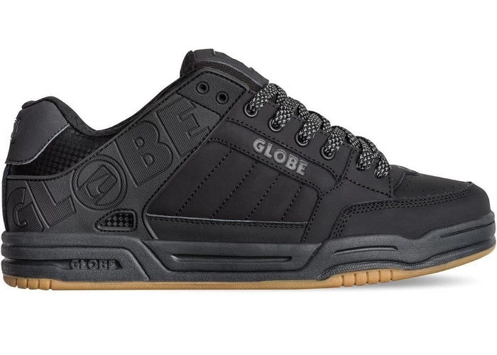 The Tilt in Dark Shadow/Phantom is a fully padded cupsole style with bold logo treatment made of action nubuck/synthetic nubuck/textile/TPR. It features a moulded TPR collar with Globe’s S-Trac ™ sole pattern.