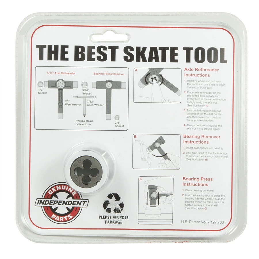 Officially licensed and patented design—The Best Skate Tool features 9/16”, 1/2”, and 3/8” sockets, 7/32” & 1/8” allen wrenches, #2 phillips driver, a bearing press / puller, and 5/16” axle re-threader. Its seriously the only tool you’ll ever need.