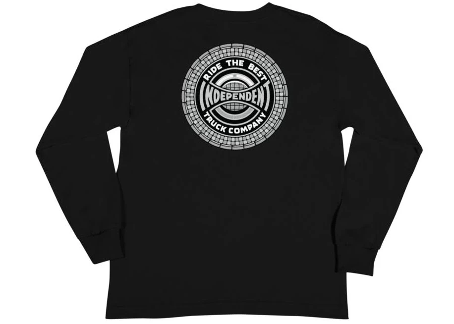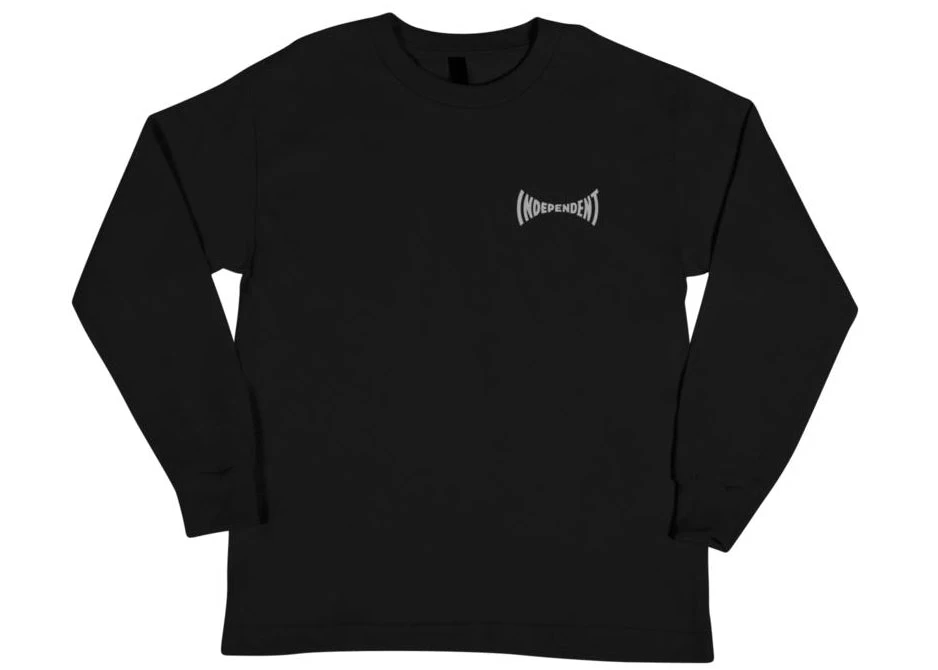 Regular fit youth long sleeve 6 oz. jersey t-shirt with small front and medium back Independent Tile Span soft hand ink logo prints.