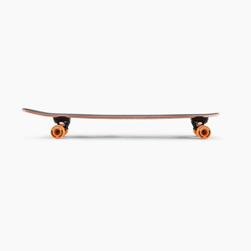 The Ripper is the Dippers big brother. The wider standing platform provides confidence at higher speeds and works great for bigger riders. The board uses slightly wider trucks to match the width of the deck. It has a soft, bouncy flex and a nice, long wheelbase which give it a playful, surfy ride. The Ripper lets you lean deep into your carves. Mellow concave and a subtle rocker will have you feeling right at home on this board. The kicktail gives you something extra to play around with on those long commutes and adds an element of versatility to this board.
