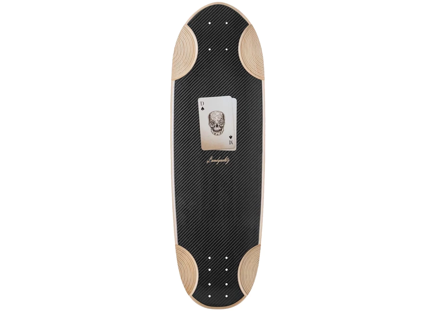 A new shape designed specifically to provide extreme grip levels and agility on the race course as well as in the mountains. This board features a short wheelbase and compact shape to let you get the most out of every corner you come across. Mellow concave, slight rocker and a tiny bit of w concave will keep you locked in and under control. The maple and carbon construction works to eliminate torsional flex and keep all 4 wheels planted even under the heaviest cornering loads.