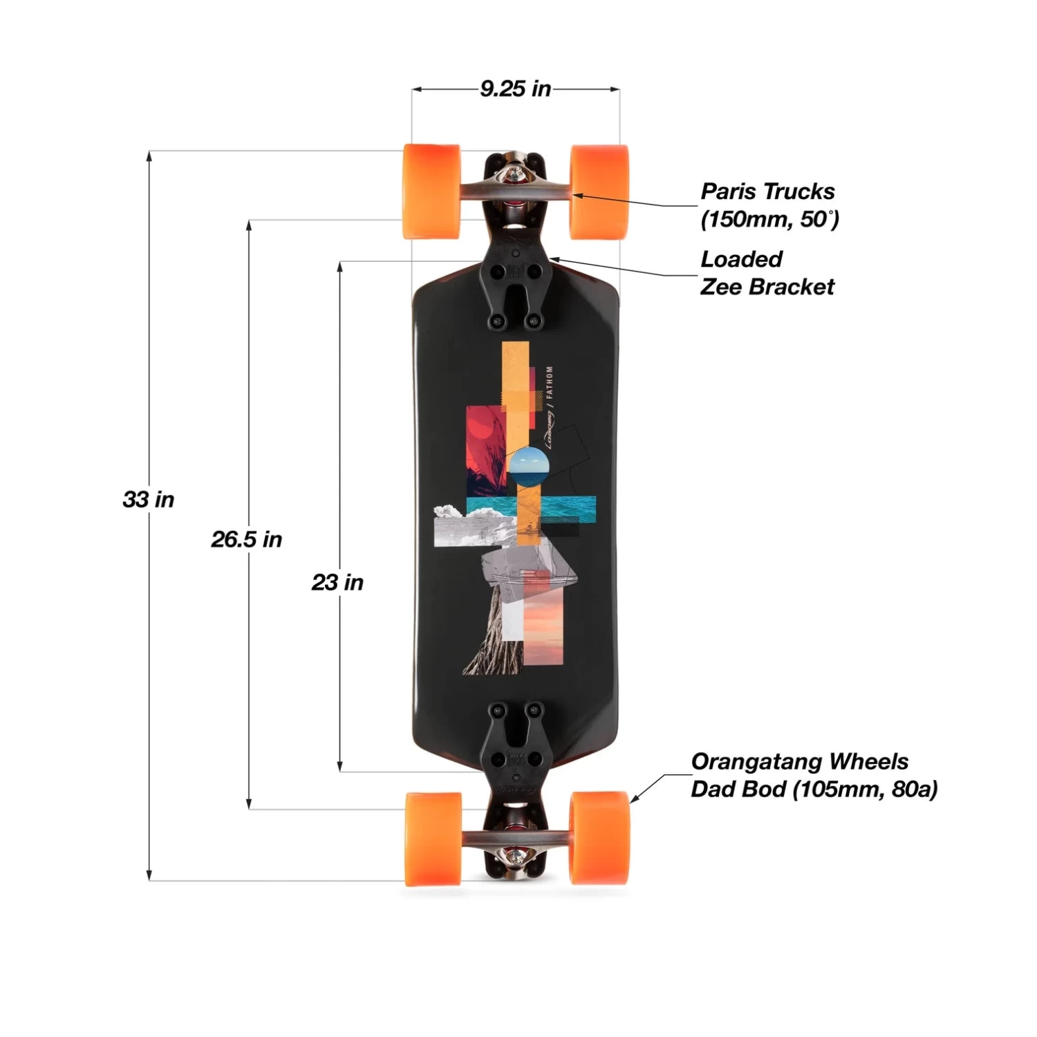 The Fathom is one of the easiest boards to ride in the world and a ton of fun. Built around the new Loaded Zee Bracket truck mounting system. With large wheels and a low ride height, the Fathom reimagines soulful commuting and urban exploration.