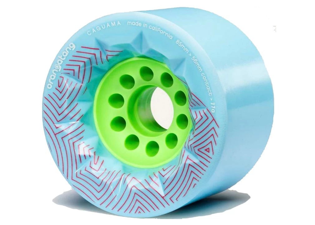 Fast, Comfortable, & Functional — At 85mm tall, the Caguama provides maximum roll speed for commuting, carving, long-distance pushing, pumping, and electric longboards. The 56mm contact patch with its surface skin provides confident grip, while the subtly rounded edges help the wheels pass smoothly across pavement cracks. Also features a 3-dimensionally faceted outer wheel face.