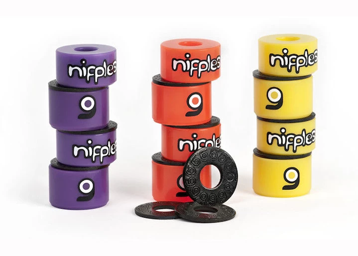 Extra lively and energetic, these double barrel Nipples will get you all hot and heavy. Sold as a set of four (4), including four thin and strong flat washers. Nipples are NOT recommended for every truck on the market, but they do work well with Paris, Tracker Fastracks and Randals (among others). Please read more here: |