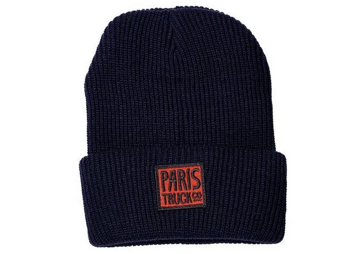 Paris Dark navy folded beanie with sewn on “Hipster” logo embroidered patch.