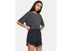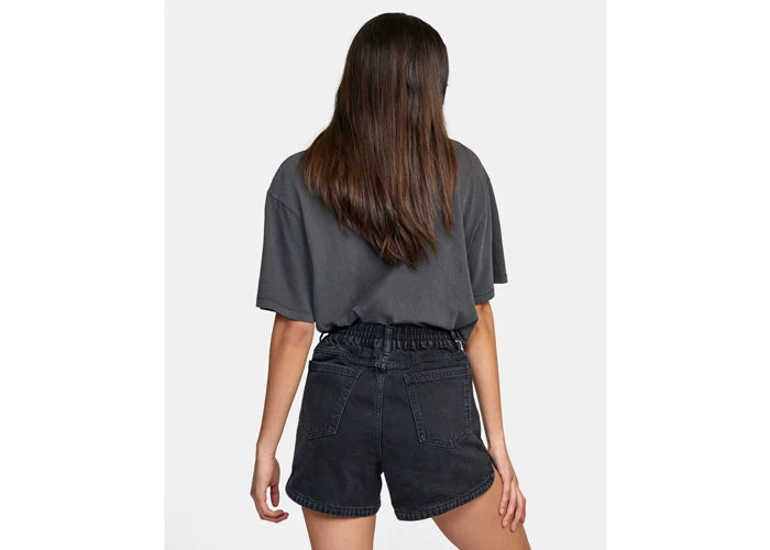 Made with cotton in a dark indigo wash, the Venice is a high-rise style with an elastic waist and button fly. The mid-length denim shorts have generous patch pockets and a cool scalloped hem. Dress them up with a flowy top, or keep it casual in a cropped tee.