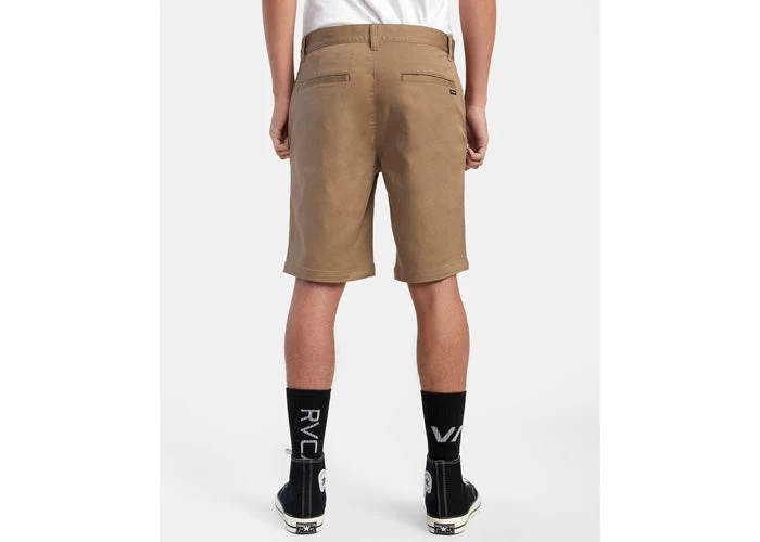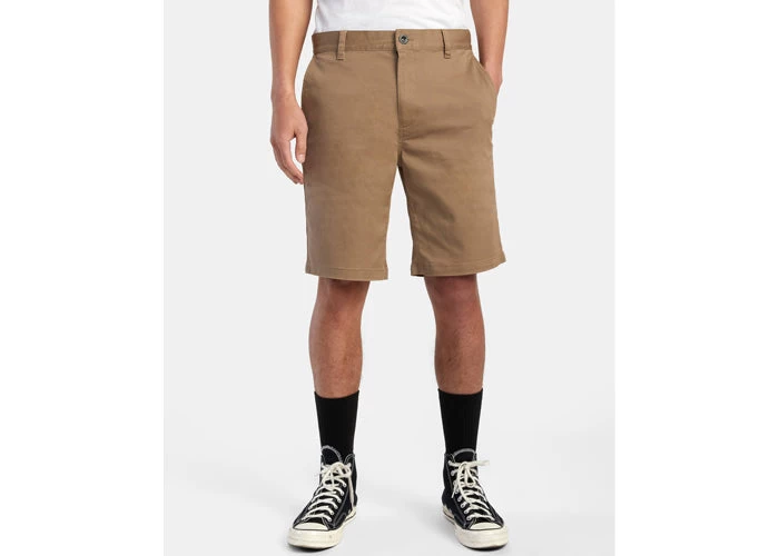 The RVCA Weekend Stretch Chino short delivers clean lines, matched with comfortable stretch. Bringing together durable twill chino fabrication and timeless design, the men’s stretch short features a slim, straight fit, topped with slash pocketing at the front and welt pockets at the back.