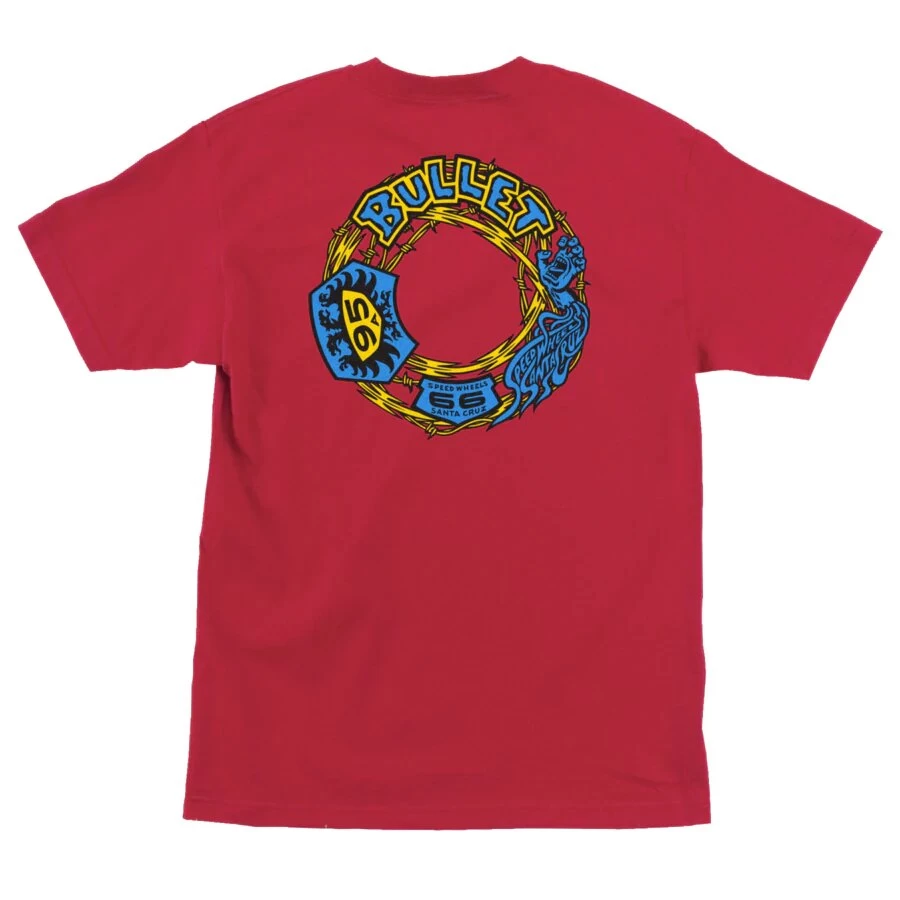 Santa Cruz and NHS are proud to release the limited edition Speed Wheels apparel collection! Celebrate one of the most famous skateboard wheels of all time- the Bullet 66. The Bullet 66 men’s, short sleeve t-shirt features small front and large back original Bullet 66 artwork prints in regular and metallic inks. Speed Wheels scream! Get them while you can.