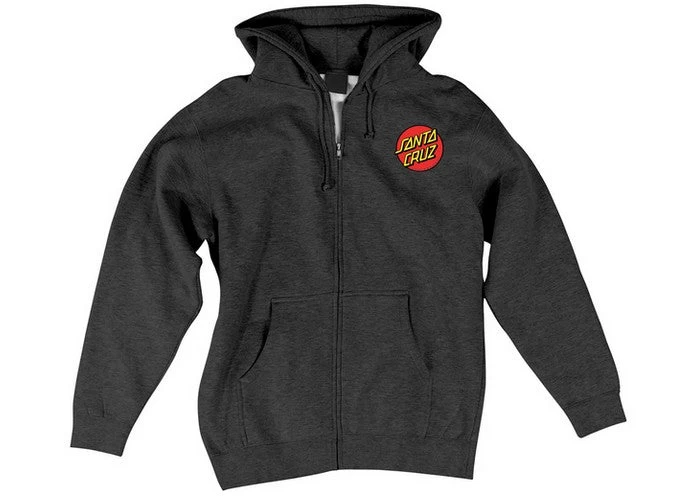 Classic Dot gear from Santa Cruz Skateboards! The SC Dot regular fit zip hooded sweatshirt features a blend of high quality cotton and comes with a front chest print, and a large back print. Available in army, gunmetal, charcoal, royal, black, grey heather, and navy.