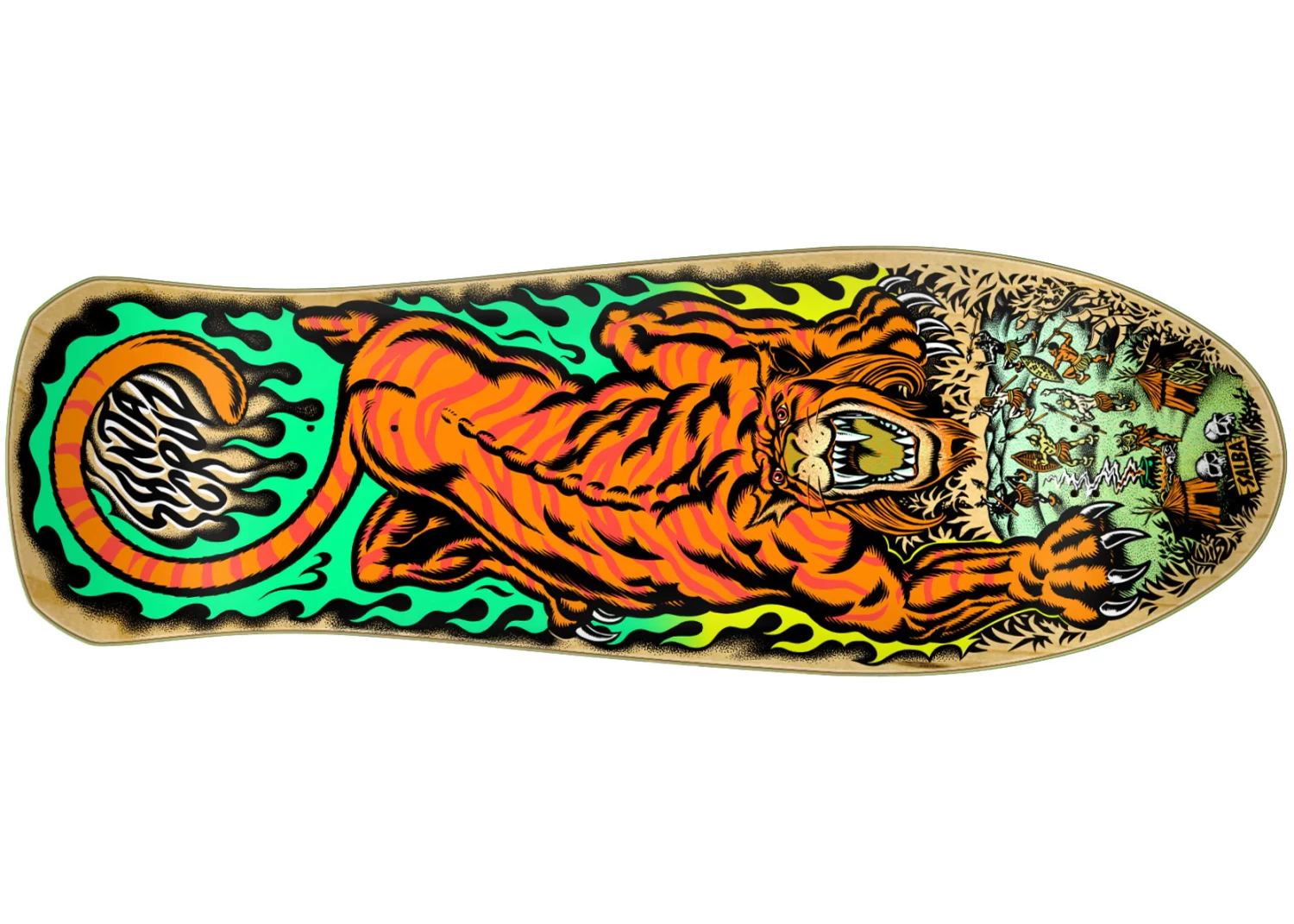 Santa Cruz Skateboards Steve Alba Tiger Reissue deck featuring spot gloss graphic and 50th Anniversary decktop laser etched logo.