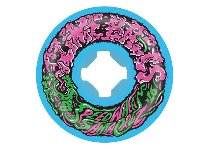 New Vomit Mini art by FALU (@falucarolei). Wide asymmetrical shape featuring a rounded back and a conical front with a wider riding surface for increased lock-in on grinds and control on all surfaces. High performance 97a urethane.