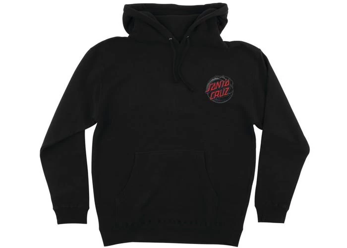 Regular fit 10 oz. heavyweight fleece pullover hoodie sweatshirt with Santa Cruz Vacant Wave Dot small front print and large back print in soft hand ink.