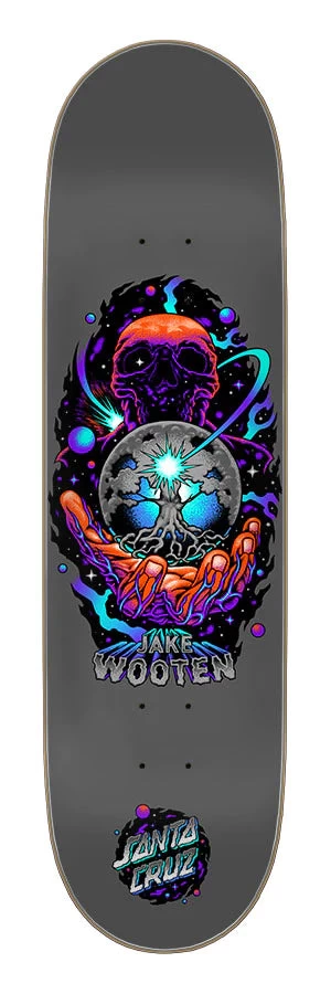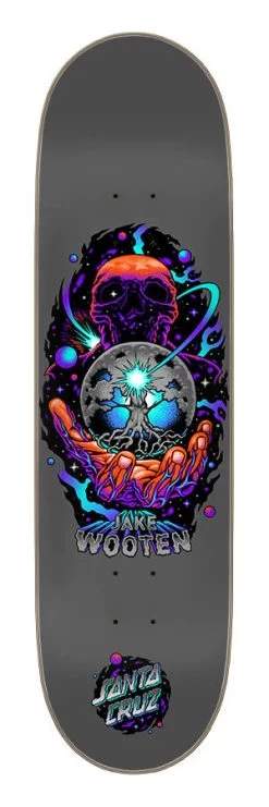 Santa Cruz Skateboards Jake Wooten Ominous Pro VX deck featuring art by Cody Melick @pitchgrim with spot gloss graphic. VX decks are thinner, stronger, and have more pop than standard 7 ply decks featuring 5 plies of North American Maple and 2 layers of Quad X technology.