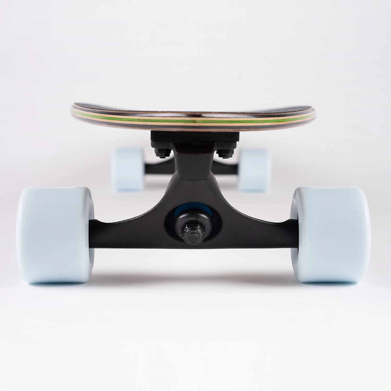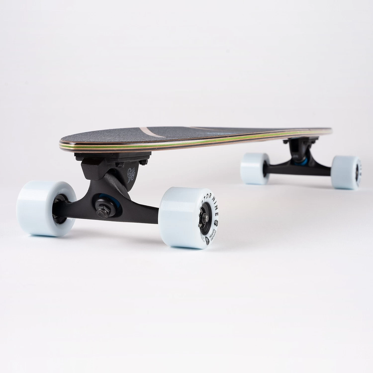 There’s nothing like the feeling of the wind blasting through your hair as you carve down to the beach. It’s even better when you’ve got that beach all to yourself on a secluded island, free from emails, work, tourists and obligations. Now imagine what that feeling looks like… and you’ve got the new Tropic Teak Collection. These boards feature exposed Teak wood on the bottom. Paired with some colorful island graphics, die cut grip tape and opaque Nineballs to match, and you’ve got some of the hottest boards in our 2021 lineup. Oh, and we’ve brought back another longtime 9’er favorite in the Chamber, a flush-mount drop thru deck riding on Sidewinder II trucks and 69mm Nineballs.