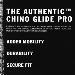 The Authentic Chino Glide Pro utilizes a unique combination of fabric and fit to enable movement without sacrificing durability – including a smooth satin interior lining for added mobility and comfort, a crotch gusset to resist blow-outs and a hidden internal shoe lace belt for a secure fit. Model is 6 feet tall and wearing a size 32. Relaxed fit with a straight leg and comfortable rise.
