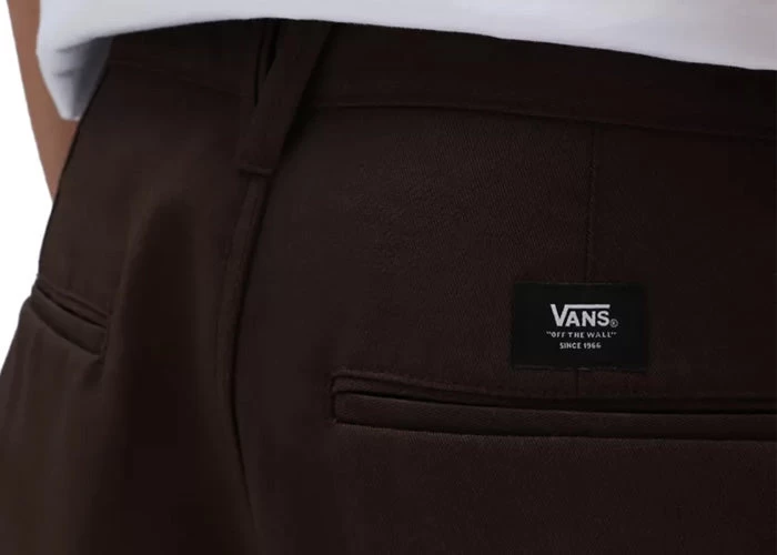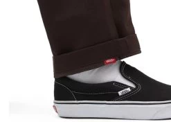 Built with cotton/nylon fabrication featuring a tough cotton exterior and satin nylon interior, this relaxed chino pant includes classic chino front hand pockets with elastic gussets and a new coin pocket placement on the right, rear welt pockets with button closures, and embroidered “Drop V” bartacks for reinforcement. For added mobility and comfort, we’ve added an inseam crotch gusset. Plus, new details bring plenty of “Off The Wall” style to this skate essential, including the new “V” belt loop detail on the back waistband, the new checkerboard twill taping on the internal fly facing, and the new flag label sewn internally to the hem seam for added branding when legs are cuffed.