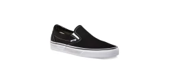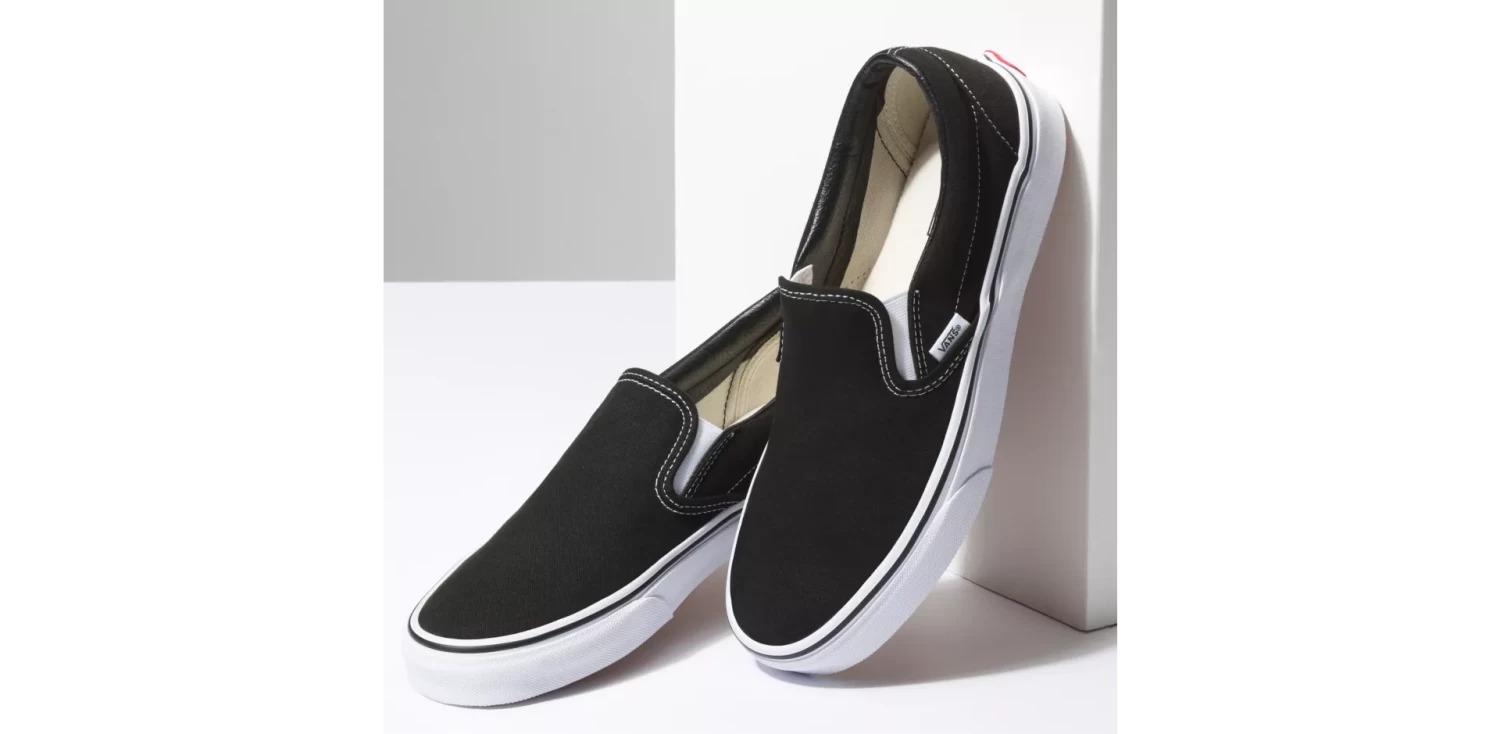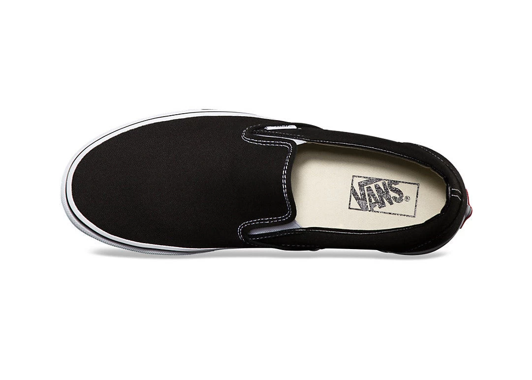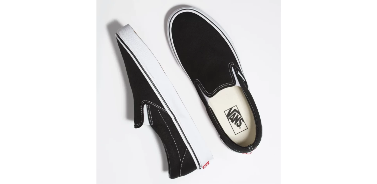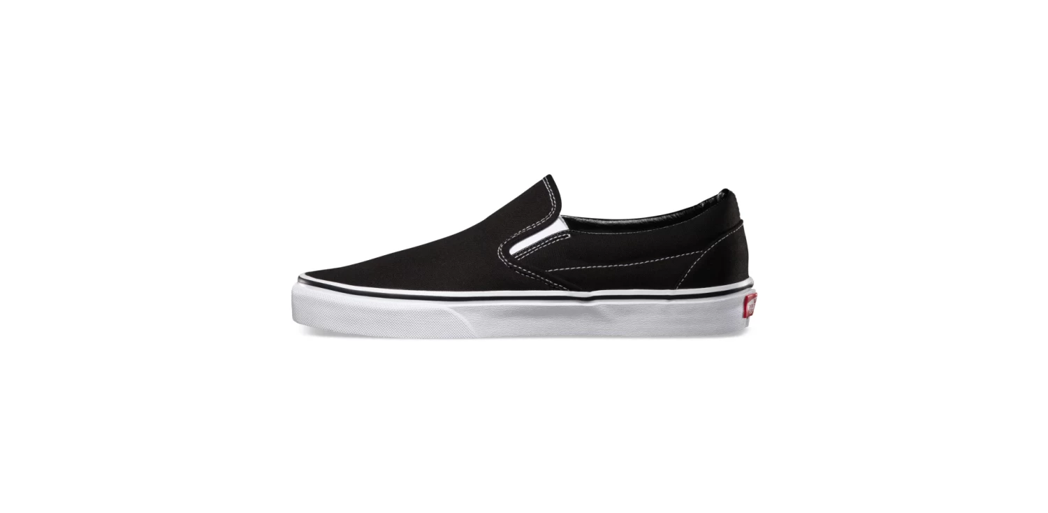 The Canvas Classic Slip-on has a low profile, slip-on canvas upper with elastic side accents, Vans flag label and Vans original Waffle Outsole.