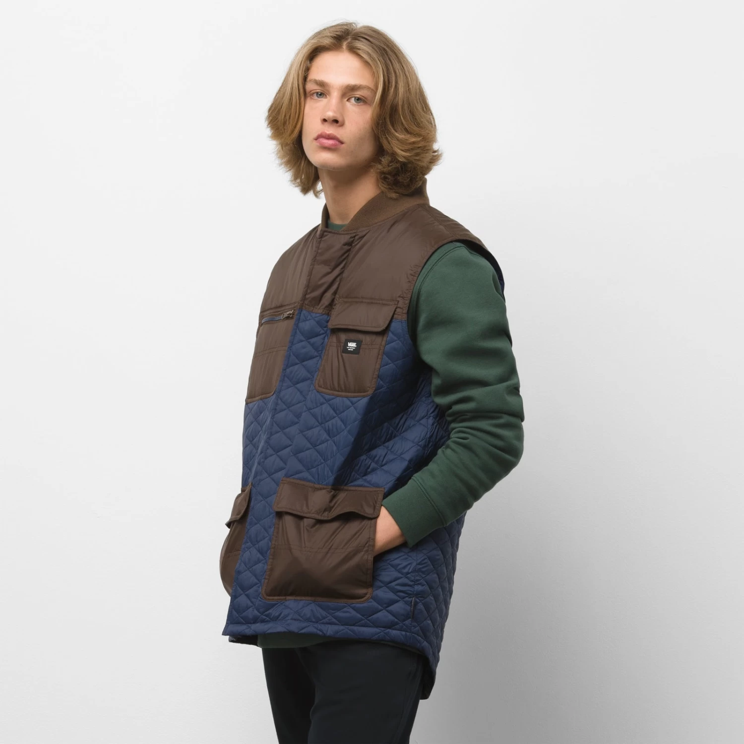 Vans MTE is the byproduct of a lifetime spent outdoors, because we know that the pursuit of your passions isn’t always accompanied by a fair-weather forecast. Rain, sleet, snow, mud, wind—nothing is going to stand between you and your next adventure. In fact, we like to think these all add a bit of flavor to the experience. It’s why we created MTE in the first place. Offering protection from the elements with classic Vans styling, the Drill Chore Vest ThermoBall MTE-1 features durable water repellent coating, ciré fabric, and ThermoBall™ insulation for lightweight warmth that resembles goose down. Made with a mix of polyester and nylon, this drill chore vest delivers on a new promise of an all-weather enabling product. Whether you find yourself bagging snowcapped peaks or braving a rain-soaked commute, you can set off with confidence knowing every stitch of your equipment is intentionally placed to provide ultimate versatility. After all, we know it was never about the destination. It’s about the stories you create along your journey. Model is 6 feet tall and wearing a size Medium. • MOISTURE MANAGEMENT – Durable Water Repellent coating keeps you dry. • PREMIUM INSULATION – The revolutionary ThermoBall™ synthetic insulation is lightweight and resembles goose down, providing phenomenal warmth. • MATERIAL – 100% nylon body, 100% polyester fill and lining. • CHORE COAT STYLING – From the button closure to the array of patch pockets, cold weather comfort has never looked so good.