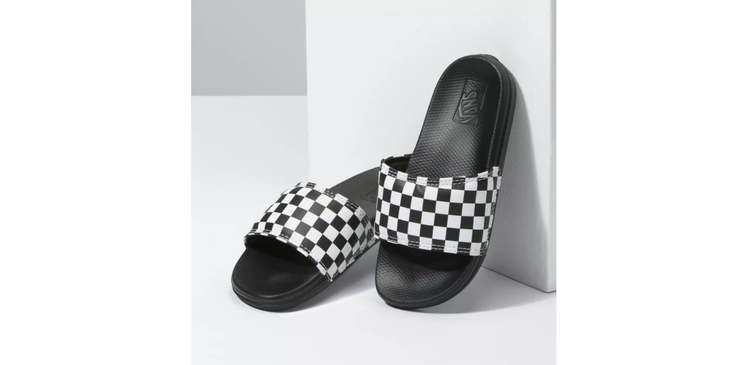 Inspired by Vans’ classic vulcanized roots, the Kids Checkerboard La Costa Slide-On is made with a synthetic checkerboard nubuck strap featuring soft synthetic rubber and stretch textile lining for comfort. It also includes lightweight, flexible, and durable injected ULTRACUSH™ Lite waffle outsoles, and water-based inks and glues.