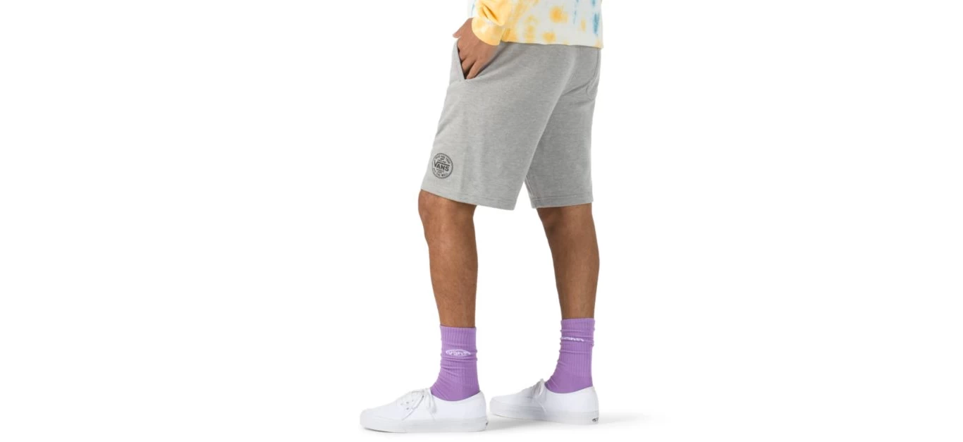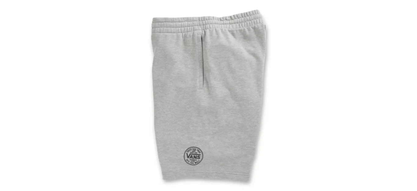 The Logo Fleece Short is a 60% cotton, 40% polyester brushed back fleece short with an elastic waist, front slash hand pockets, a right rear patch pocket, and a screen print on the left thigh. Model is 6 feet tall and wearing a size Medium.