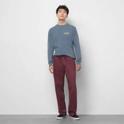 The Range Relaxed Elastic Pant is a comfortable elastic waist pant made with soft stretch cotton. The front slash hand pockets include a coin pocket on the right side, and embroidered Drop V bartacks provide critical reinforcement with a heritage twist. Along with a key loop on the right rear waistband and the new flag label sewn internally to the hem seam for added branding when legs are cuffed, this relaxed pant brings comfort to the next level. Model is 6 feet tall and wearing a size Medium.