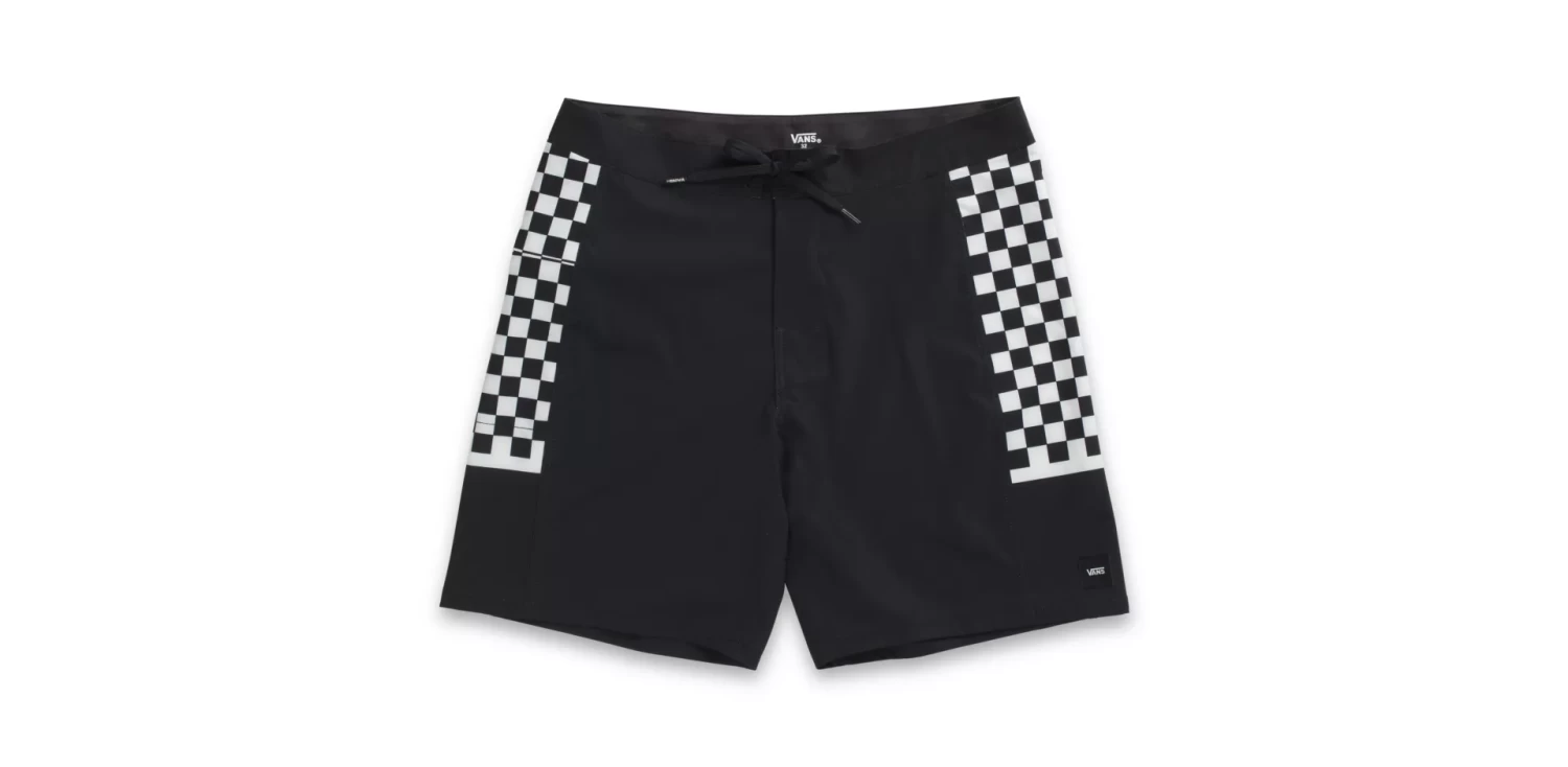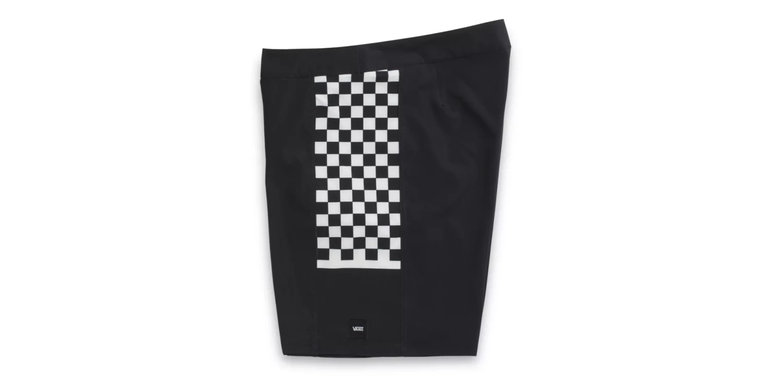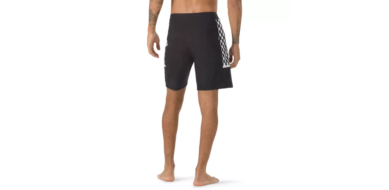 The Side Bar Boardshort is a 90% polyester, 10% elastane water-repellent boardshort featuring an engineered four way stretch that has the perfect blend and weight of stretch material to perform in the water, and keep its shape when worn out of the water. Compared to flimsy stretch fabrics, the Vans premium 4-way Sturdy Stretch is longer lasting, more wearable, fast drying, and allows a full range of motion to move with you when it counts. Combining this durability with all-day comfort, the Side Bar Boardshort also includes a checkerboard print, inset panels on the sides, and a Vans branded woven label at the side seam. Outseam: 18 inches. Model is 6 feet tall and wearing a size 32.