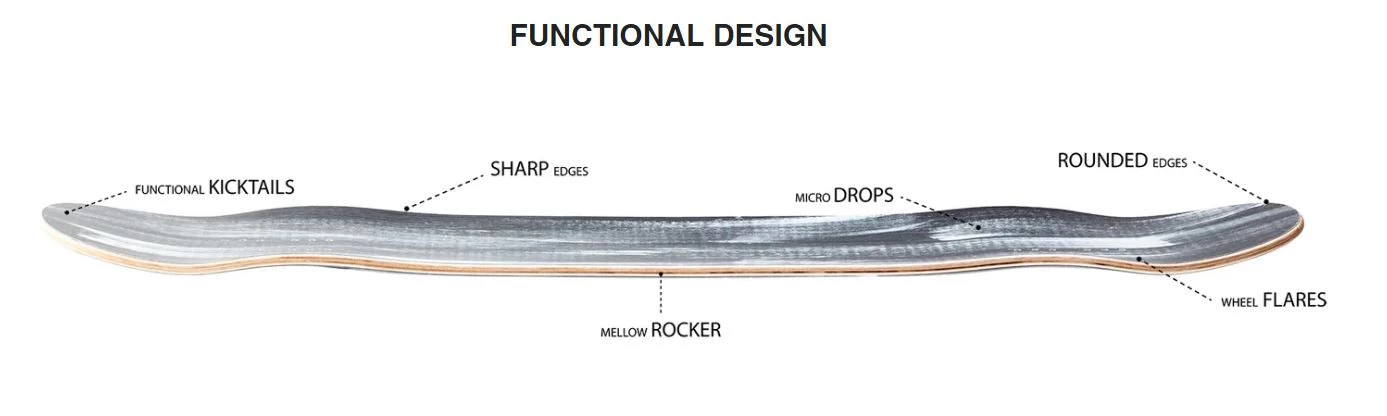 The pre tensioned, pre cured fibreglass is an even stronger alternative to traditional triaxial fibreglass. Not only can it withstand even more wear and tear, but its physical properties also boost the board with pop as if your special meter were full. And with more progressive micro-drops, you’ll be sending those ollies straight up, guaranteed.